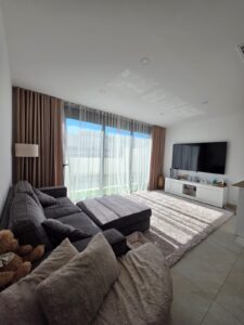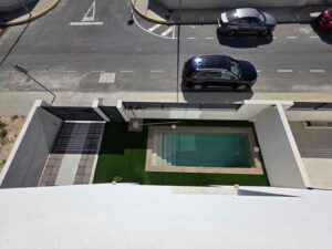 Detached and modern 2-story Villa on a 147 m2 plot, built in 2024, in a quiet Residential area in Benijofar, approximately a 5-minute drive from Ciudad Quesada. The ground floor consists of a large living room with sliding windows and access to the spacious terrace, a fully equipped open kitchen, a toilet and a storage room. The first floor consists of two double bedrooms and a complete bathroom with an Italian shower. With a solarium that offers magnificent panoramic views. Access via an internal staircase. The property has a private swimming pool (12.60 m2), a large garden with Mediterranean plants, a barbecue area and you can park the vehicle on the private plot. With direct access from the street. Furnished. Built-in wardrobes in the bedrooms. Ducted air conditioning. Modern style. High quality materials. Very good location, close to all amenities, supermarkets, cafes, and so on., about a 15-20 minute drive from the beaches of Guardamar and La Mata and about a 10-minute drive from La Marquesa Golf Course. A luxury! Ideal for relaxing and enjoying the wonderful Mediterranean climate!