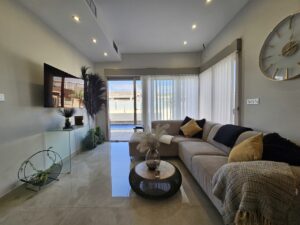 Immaculate modern detached villa for sale located in Residential Pink Paradise, an exclusive residential complex in Villamartin, just minutes from the well known Villamartin Plaza and the huge variety of international restaurants, supermarkets and convenience stores. This Villa has been built to a high standard and offers the perfect blend of comfort and luxury. This property has three spacious bedrooms with built-in wardrobes, two modern bathrooms (of which 1 is en-suite), and a living room with an open plan fully equipped kitchen and breakfast bar. The highlight of this villa is the private swimming pool along with the beautiful solarium offering breathtaking views of the pink salt lake and pine forest making it an ideal spot for enjoying the sunsets or stargazing. The villa is sold fully furnished minus the current owner's personal items with many extras including ducted air-conditioning throughout and electric shutters. This property is the epitome of single-story Mediterranean living, combining elegance and relaxation in one exquisite package. The area is known for its beautiful hiking trails, several 18-hole golf courses, as well as Villamartin Plaza, which is the center of Villamartin - here it is bustling with life with the many restaurants and bars to be found. Otherwise, it is 6-7 minutes to drive to the many beautiful sandy beaches.
