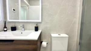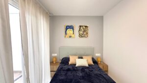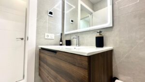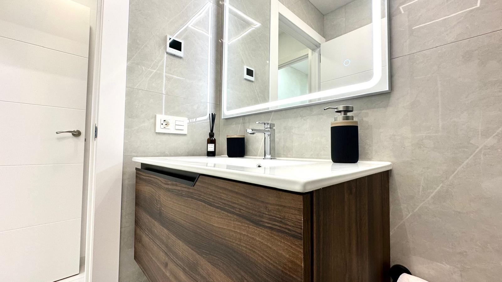 Spectacular renovated ground floor apartment next to Playa del Cura beach Located on the second line of the iconic Playa del Cura beach, this property represents a unique opportunity to enjoy comfort, design and proximity to the sea. With a total usable area of 90 m², this fully renovated ground floor apartment perfectly combines modernity, comfort and quality in every detail. From the outset, the property stands out for its excellent comprehensive refurbishment, where every aesthetic and functional aspect has been carefully considered. The property is delivered fully furnished and decorated in a modern and elegant style, using top-quality materials. All the furniture is new, as are the appliances, allowing you to move in without the need for any additional investment. The interior layout is spacious and well thought out. It has a cosy open-plan kitchen, equipped with contemporary furniture and connected directly to a bright open-plan living-dining room. This main room faces south, ensuring excellent light throughout the day. It also has a large panoramic window equipped with electric blinds, allowing you to enjoy natural light and the Mediterranean breeze in complete comfort. Comfort is assured thanks to its centralised air conditioning system with ECO technology, which guarantees an ideal temperature throughout the year while optimising energy consumption. The sleeping area consists of two spacious double bedrooms, both tastefully decorated and designed to offer maximum tranquillity. The master bedroom has an en-suite bathroom, providing privacy and functionality. The second bathroom, equally modern and fully equipped, serves the rest of the property. As an ideal complement, the property has a fabulous back garden, a perfect outdoor space for relaxing, enjoying family gatherings or creating a green and peaceful corner in the heart of the city. In short, this property combines all the qualities that define an exclusive home on the coast: an unbeatable location, high-quality materials, modern fittings and a design focused on comfort. Located just a few metres from the sea, it is an ideal choice as a permanent residence, holiday home or secure investment in one of the most sought-after areas of Torrevieja.