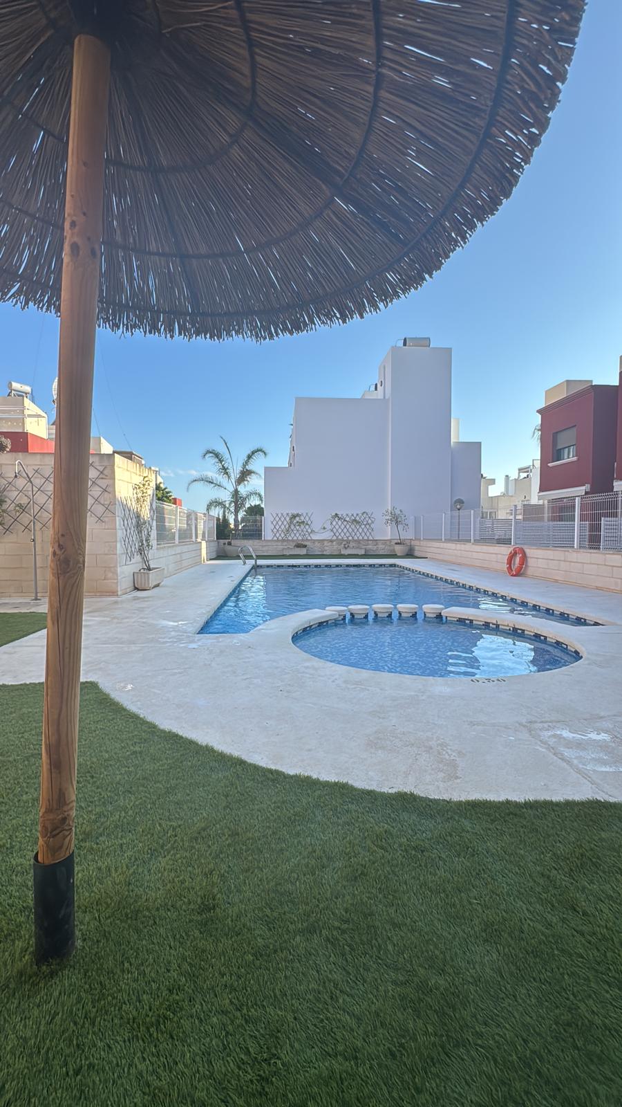 Discover this charming townhouse located in the beautiful city of Torrevieja, in the desired Southern Costa Blanca. This cozy home offers a perfect refuge to enjoy the warm Mediterranean climate and the vibrant culture of the Alicante region.Spatial DistributionThe house features 2 bedrooms and 2 bathrooms, making it an ideal choice for small families or those seeking a cozy space. The smart layout maximizes functionality, providing comfort and style in every corner of the home.Highlighted FeaturesWith a built area of 76 m², this property is designed to offer bright and welcoming spaces. The west-facing orientation ensures that your home receives plenty of natural light during the afternoons, creating a warm and pleasant atmosphere.One of the main attractions of the property is its 10 m² terrace, a perfect place to enjoy outdoor moments, sunbathe, or share meals with good company. Additionally, the house includes a private garden that provides a touch of nature and tranquility.Amenities and EquipmentThe home is equipped with air conditioning, ensuring a cool environment during the hot summer months. Parking is also included, a highly valued feature in this area.Residents will have access to a community pool. These amenities make this home a perfect place to relax and enjoy leisure moments.A Lifestyle on the Costa BlancaLiving in Torrevieja will allow you to enjoy a wide range of recreational activities, from white sandy beaches to a vibrant nightlife. The city is known for its welcoming atmosphere and fantastic restaurants, shops, and local markets. Additionally, the proximity to natural areas and parks offers opportunities for hiking and other outdoor activities.This townhouse is not just a property; it's an invitation to enjoy the charm and serenity that the Southern Costa Blanca has to offer. With an idyllic setting and features designed for comfort, this is an opportunity you won't want to miss.
