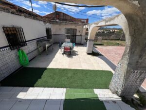 Discover this delightful single-storey home set on a spacious, fully fenced plot in a peaceful area of Algueña. With a secure gated entrance and plenty of outdoor space, this property offers the perfect balance of privacy, comfort, and rustic charm.The house features a generous front porch, ideal for relaxing outdoors, two inviting living rooms each with its own fireplace (one with wood paneling for a warm, cabin-like feel), a fully equipped independent kitchen, two bright and comfortable bedrooms, and a well-maintained full bathroom.A highlight of this property is its private sauna, offering a wellness experience right at home. The plot also includes several outbuildings, including a dedicated animal shelter, ideal for keeping poultry, small livestock or pets. There are also paved outdoor areas suitable for parking, gardening, or entertaining.This property is perfect as a main residence, weekend getaway, or investment opportunity with great potential —All in a quiet yet well-connected location within the village, offering both privacy and convenient access to nearby services-Book your visit today and fall in love with the lifestyle this property has to offer.