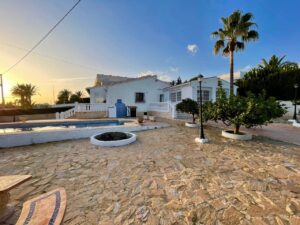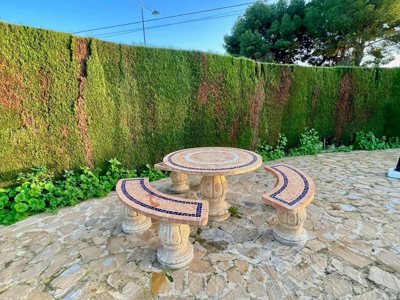 Villa in Benidorm: Comfort, privacy and exceptional location We present this exclusive villa in Benidorm, located in the quiet area of Urbanizaciones en Barrina Norte, designed to offer maximum comfort and functionality. With a built area of 120 m² and a large plot of 800 m², this home is ideal for families or couples looking to enjoy a spacious and well-kept space. The villa is organized on one floor, making it accessible and practical for everyday use. It has three double bedrooms equipped with built-in wardrobes, which provide comfort and storage. It has two full bathrooms, designed to meet the needs of any family. The equipped kitchen, with a pantry included, is perfect for lovers of gastronomy and is connected to a functional gallery. The bright and cozy living room gives access to a glazed terrace, ideal for enjoying the outdoor space all year round. The exterior of the property is a true oasis. It includes a private garden surrounded by vegetation, a large patio and a private swimming pool, perfect for relaxing on sunny days. The plot also has two storage sheds, providing additional storage space. This corner home guarantees privacy and security, thanks to electric shutters, security bars and a reinforced door. In addition, it has air conditioning, an alarm system and an excellent south orientation, which ensures unbeatable natural lighting. Just 3 km from the beach, this villa combines the tranquility of a residential area with proximity to all essential services, such as supermarkets, schools, medical centers, parks and public transport. It also has a large parking space included. This villa is the perfect opportunity for those looking for a ready-to-move-in home, with all the comforts and in a privileged location. Contact us today and come discover your new home in Benidorm.