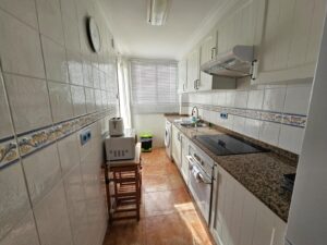 Beautiful flat in the Arenal of Jávea, a few steps from the beach and close to all amenities, this flat of 80 m² has three bedrooms with fitted wardrobes and a bathroom with a large shower. The kitchen is of a good size with access to a utility room, which makes it very comfortable for day to day living. The living/dining room is equipped with air conditioning hot/cold and is very luminous as it has access to a large terrace with awning, perfect for lunch or dinner enjoying the magnificent weather of Javea. The flat has been completely and tastefully refurbished with parquet flooring, double glazed windows with shutters, contemporary bathroom and kitchen and is being sold furnished, making the move much less complicated. It also comes with a private covered parking space and a storage room of 12 m².
