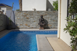 Discover your new home, a striking villa in Las Ramblas Golf that combines elegance, versatility, and modern comfort across three thoughtfully designed levels. On the ground floor, a completely self-contained apartment with its own entrance provides a practical and private space, featuring two spacious bedrooms, a fully fitted kitchen, a comfortable living and dining area, and a modern bathroom. The upper living level is bright and inviting, with a hallway leading into an open-plan lounge and dining area that flows seamlessly onto a terrace and expansive solarium, offering panoramic views. An open kitchen, fireplace and a guest WC complete this floor. On the lower living level of the main house, two elegant ensuite bedrooms each open onto a private balcony, creating tranquil retreats with plenty of natural light and scenic outlooks. Outside, the villa is designed for both relaxation and entertaining, with a private swimming pool, a dedicated BBQ and chill-out area, and a converted garage that now serves as a stylish bar, perfect for evenings with friends. This detached villa is located in the prestigious Las Ramblas Golf community (with views of Hole 2!), with the additional use of 6 communal swimming pools. Nearest supermarkets and high street only a 5 minute drive away.