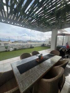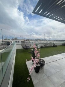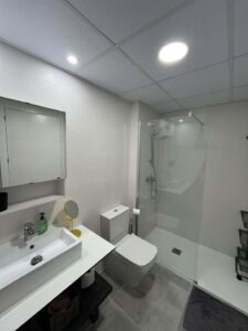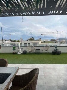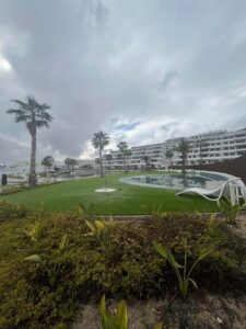 A magnificent property in Finestrat Three bedrooms, two bathrooms, beautiful views from a huge balcony. Magnificent facilities including a large swimming pool, heated indoor pool, sauna, paddle court, gym and more.Description:Enter into a spacious hall with tiled floors. Three spacious bedrooms all with wardrobes, bathroom in the master bedroom. Living room and kitchen are in an open space, lots of cupboard space in the kitchen and good appliances.The balcony is very large and from there there is a magnificent view of the beautiful city of Benidorm with all its cloud forests.Parking in a garage and storage in a garage.A large shopping center and other shops are within walking distance.The area is guarded and there is a guard at the gate 24 hours a day.Several golf courses within a 10 minute drive of the apartment.