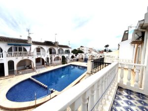 Kamienica z 2 sypialniami i basenem w el Chaparral, Torrevieja WŁASNOŚĆ: Ta kamienica znajduje się wewnątrz zamkniętego regionu mieszkalnego podzielonego na 2 piętra. Po wejściu do mieszkania znajdujemy się w zamkniętym ganku / tarasie z kominem, w którym można zrobić grilla. Część dzienna jest połączona z w pełni wyposażoną kuchnią na otwartym planie, a na tym samym poziomie znajduje się pralnia i toaleta. Na parterze znajdują się 2 sypialnie, z których jedna ma dostęp do przestronnego tarasu z widokiem na sieć i basen. Na parterze znajduje się również pokój wypoczynkowy. Należy powiedzieć, że może istnieć basen sieciowy i otaczająca go zieleń, w której można się opalać i zrelaksować. Samochód można zaparkować poza ulicą. LOKALIZACJA: Torrevieja znajduje się w prowincji Alicante (Costa Blanca). Słynie ze śródziemnomorskiego klimatu i wybrzeża. Nie możemy zapomnieć o promenadach, gdzie możemy znaleźć kilka restauracji wzdłuż pięknych piaszczystych plaż. Posiada również wiele doskonałych plaż, takich jak Playa de los Náufragos, Playa de los Locos i Playa de la Mata. Dlatego też jest uważane za niezwykłe miasto turystyczne, w którym środowisko zajmuje ważne miejsce jako ważna atrakcja turystyczna. Ponadto można tu znaleźć wiele centrów handlowych (Habaneras, La Zenia Boulevard), pól golfowych, ośrodków sportowych, szpitali (takich jak Hospital Universitario de Torrevieja) i lotnisk, takich jak lotnisko w Alicante (35 km) i międzynarodowe lotnisko w regionie Murcji (43 km). ODLEGŁOŚĆ DO PLAŻY: 3 KM ODLEGŁOŚĆ DO UDOGODNIEŃ: 300 M