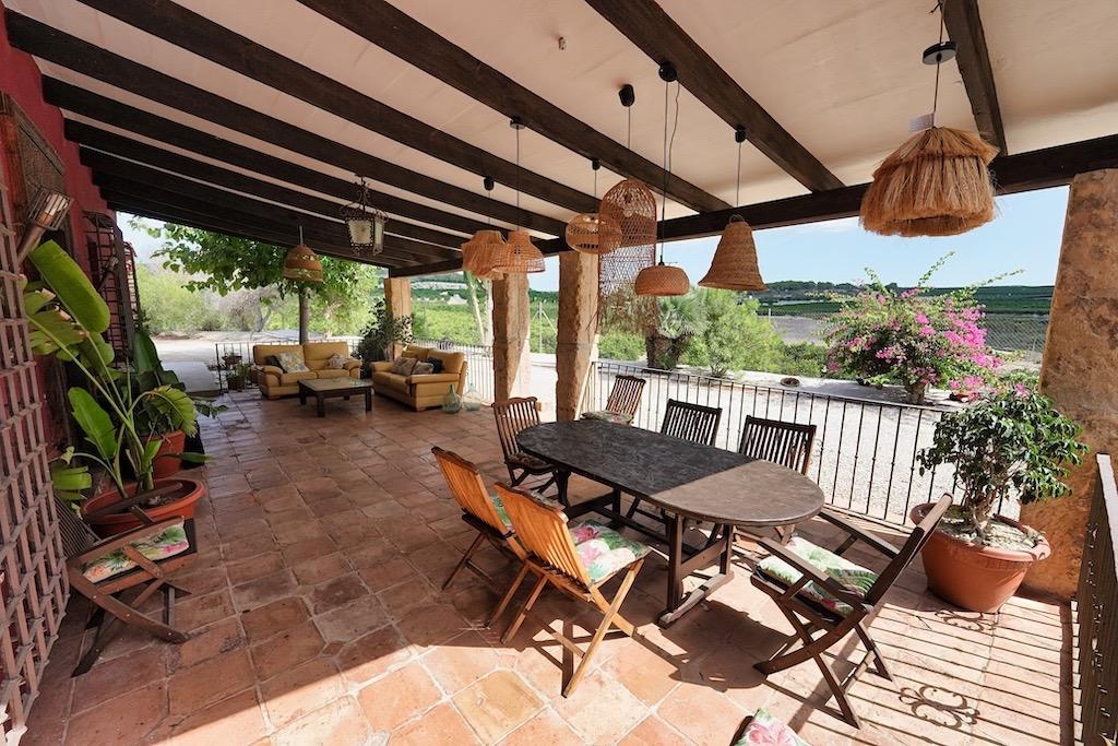 Opportunity to live in a unique place and with the possibility of having your own business.. In front of the La Pedrera reservoir, we offer you an impressive independent Chalet on a plot of 13,700 meters and with a house of 320 meters with stunning views of the reservoir.. This impressive house is distributed on two floors with two living rooms with fireplace, one of them very large of 85 m2, kitchen with its island, 4 bedrooms, 3 bathrooms, 1 toilet, solarium and a large porch overlooking the orange trees, large terrace with barbecue and pool of 15 x 7 m, facing the lake.. There is possibility to expand the house on the top floor.. The interior design has been made by Philip Pelleter, internationally recognized that appears in the book Interior Design Review.. The house is sold fully furnished with antique furniture doors of India ....