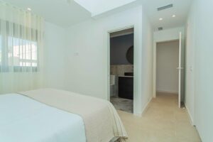 Welcome to this beautifully renovated villa in the sought-after El Chaparral neighborhood of Torrevieja. Combining contemporary design, cutting-edge technology, and the warmth of Mediterranean living, this property is perfect for a relaxed lifestyle on the Costa Blanca. Designed with both comfort and functionality in mind, the villa offers a seamless layout. Upon entering, a welcoming hallway connects to the bedrooms on one side and leads into the open-plan dining area and kitchen. The stylish, fully equipped kitchen is perfectly situated next to a covered patio with ceiling fans, creating an ideal setting for outdoor dining. The home features three spacious bedrooms and two sleek, modern bathrooms, both equipped with electric blinds for added convenience. The living room also benefits from electric blinds, allowing for effortless privacy and light control. Step outside and enjoy the villa’s southwest-facing garden, designed for low maintenance and maximum relaxation. A private pool serves as the centerpiece, complemented by a covered terrace perfect for lounging and entertaining. Additional patio areas and a separate storage room enhance the home’s practicality. This villa is equipped with top-tier modern amenities, including ducted air conditioning throughout, solar panels providing power for both electricity and hot water, and underfloor heating in the bathrooms. A security camera system offers additional peace of mind. Fully furnished and move-in ready, the home also boasts built-in wardrobes and ceiling fans for added comfort. Whether you’re searching for a tranquil family retreat or a stylish holiday getaway, this villa has it all. Nestled in a quiet yet well-connected location, you’ll have easy access to all that Torrevieja and the Costa Blanca have to offer.