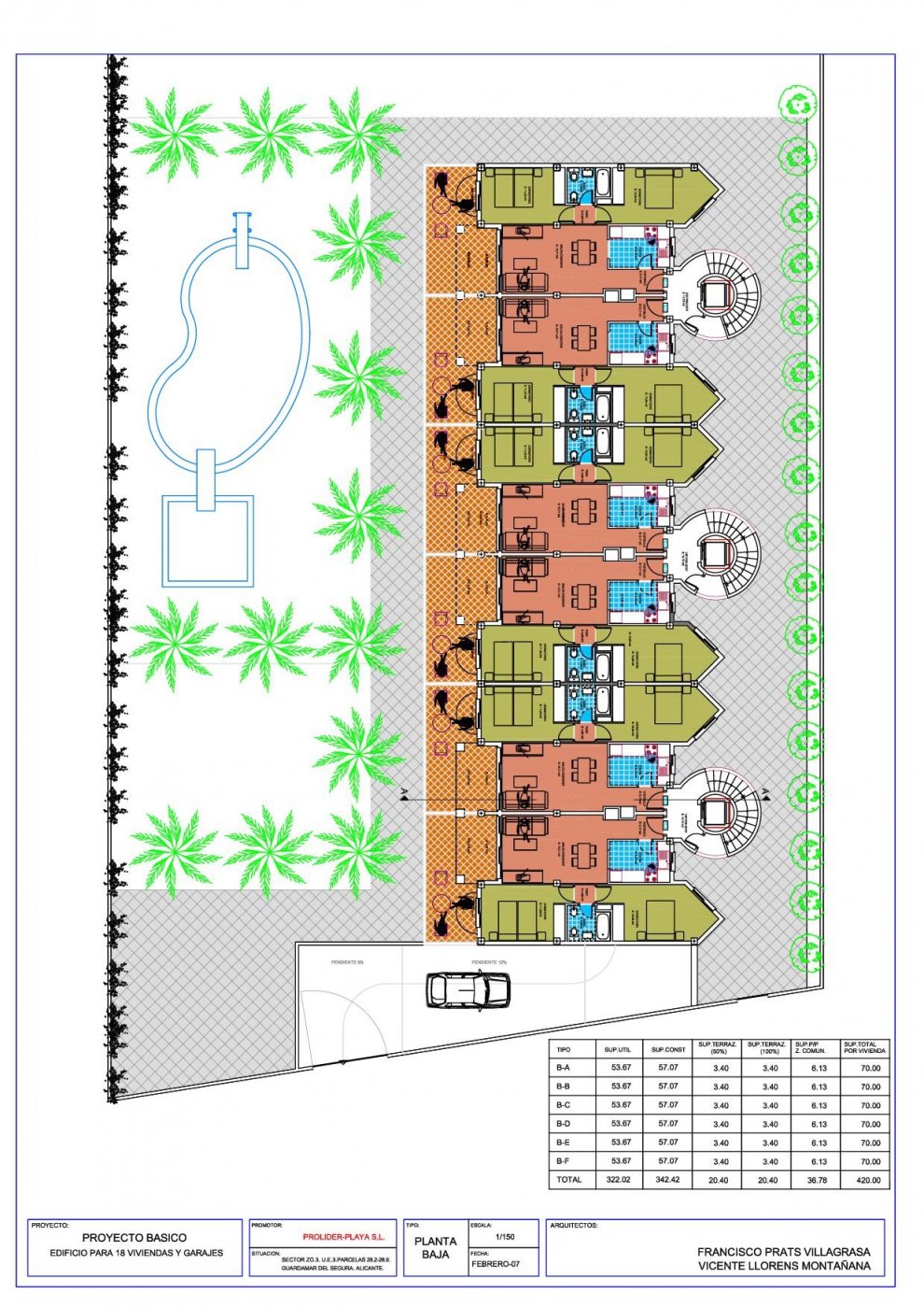 2,144m2 urban plot for sale with different phases of work already executed . Located in Sector ZO-3 (Los Secanos) of Guardamar del Segura. It includes projects, building license and the different phases of work already executed. Development for 26 homes with different types of houses; apartments and townhouses. In the basement, there would be 29 parking spaces and 10 storage rooms. Private residential with communal pool and garden areas in Guardamar del Segura (Alicante) less than 1 km from the Roqueta beach (Costa Blanca). The promotion is made up of two work phases: * Phase I: 18 apartment-type dwellings on the ground floor + 2 floors. * Phase II: 8 homes; 4 apartments on the ground floor and 4 townhouses on the 1st floor. Residential with private pool, garden areas and basement for 29 garages and 10 storage rooms. Forecast for 5 elevators (3 in Phase I and 2 in Phase II, with a route from the basement to the community solarium). Of the work phases already executed, it has: * Basic and Execution projects. * Geotechnical study. * Building licenses. * Earthmoving and excavation, * Drainage and waterproofing of the perimeter wall. * Structure Phase I and II. * Façade enclosures on the ground floor. Price of the land with licenses, projects and work phases already executed: € 1,800,000 Urban plot located in the residential area of the Z.O.- 3 sector of Los Secanos, close to services and less than 1 km from La Roqueta beach in Guardamar del Segura (Alicante).