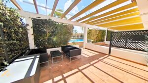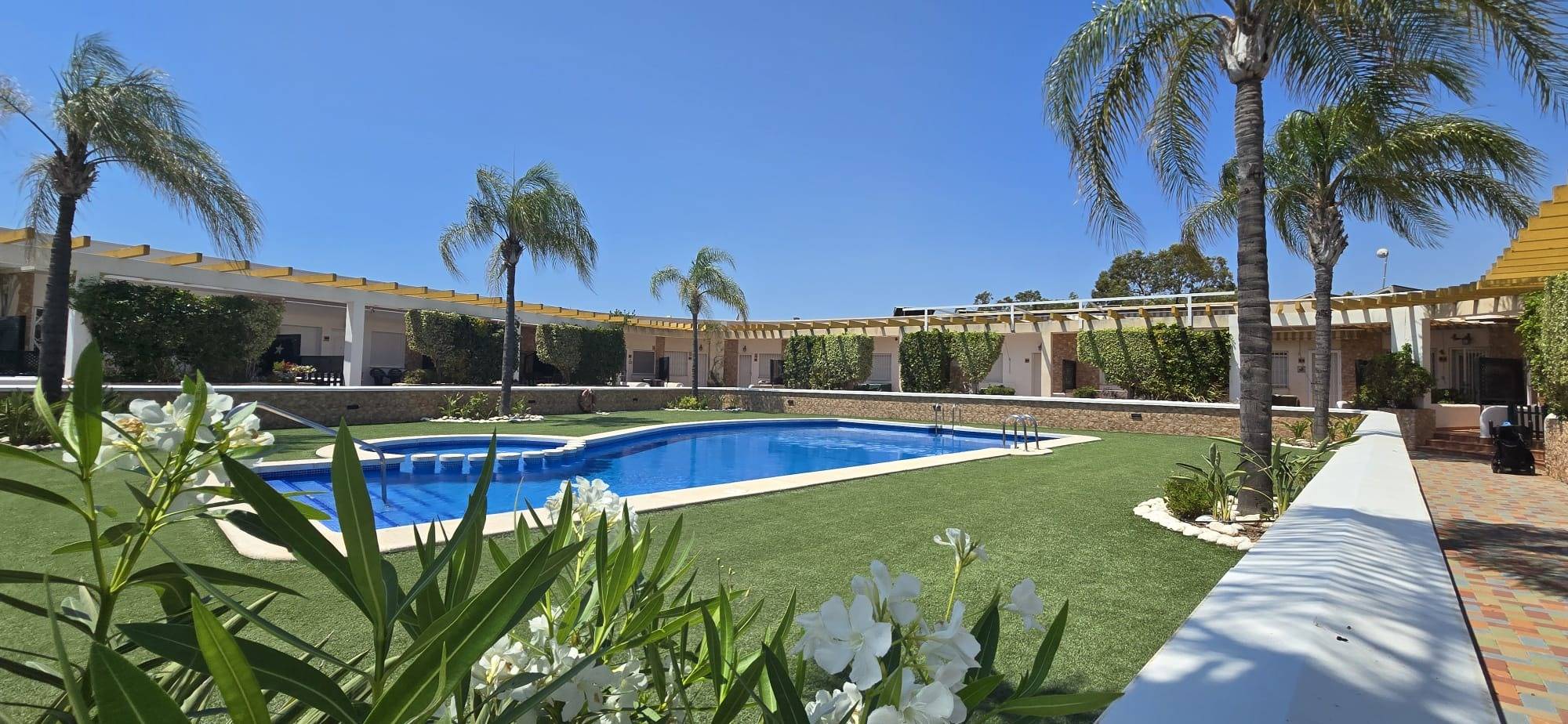 Discover this charming townhouse located in the peaceful area of Mil Palmeras, an ideal place to enjoy the sun and the sea. This nearly-new property offers two comfortable bedrooms that ensure rest and comfort. Its southeast orientation allows you to make the most of daylight hours with natural light. Enjoy a spacious enclosed glazed living room that connects to a terrace—perfect for relaxing or sharing unforgettable moments with family and friends. The plot has a total area of 213 m² where you can create your ideal outdoor spaces; imagine having your own barbecue next to a beautiful garden, perfect for sunny days. Additionally, you’ll be just 200 meters from stunning beaches that invite you to practice water sports or simply delight in their scenic beauty. A parking space is included, which is very practical given the seasonal demand from visitors in this popular coastal area. You will also have access to a communal swimming pool where you can cool off during warm summer days while enjoying open views from your special corner-end spot. This townhouse is not only perfect as a permanent residence but also as a holiday investment thanks to its proximity to the Mediterranean coastline.