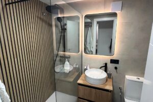 PRZESTRONNY, WYREMONTOWANY APARTAMENT (82 m² - 1. piętro), W CENTRALNEJ LOKALIZACJI, TYLKO 300 M DO PLAŻY! Stylowo odnowiony apartament w centralnej lokalizacji, 300 m od Playa de los Locos i 700 m od Playa del Cura – najpopularniejszej plaży w Torrevieja. Liczne restauracje, bary i kawiarnie tuż za rogiem, w pobliżu kilka supermarketów oraz bardzo dobra komunikacja miejska z autobusami miejskimi. Idealny zarówno do zamieszkania przez cały rok, jak i na wakacje! KLUCZOWE CECHY: –Lokalizacja – centralna, zaledwie 300 m od Playa de los Locos i 700 m od Playa del Cura. –Przestronny salon z jadalnią i nowoczesną, w pełni wyposażoną, otwartą kuchnią. –Balkon z widokiem na Calle la Sal – cichą, boczną ulicę o niewielkim natężeniu ruchu. –1 duża sypialnia, 1 nieco mniejsza i 1 łazienka (z prysznicem). –Niedawno odnowiony – wszystko w idealnym stanie, sprzedawane z pełnym umeblowaniem i gotowe do natychmiastowego zamieszkania. INNE ZALETY: –Nowoczesna klimatyzacja (powietrzna pompa ciepła) w salonie zapewnia energooszczędne chłodzenie/ogrzewanie. –Blisko kilku supermarketów (Consum 200 m, MasyMas 550 m). –Bardzo dobra komunikacja miejska z autobusami miejskimi – blisko kilku linii autobusowych. –Opłaty wspólnotowe: ok. 25 euro miesięcznie. Budynek został wybudowany w 1992 roku i jest dobrze utrzymany. Mieszkanie zostało niedawno odnowione i jest w idealnym stanie. Sprzedawane z pełnym umeblowaniem i gotowe do natychmiastowego zamieszkania. Lokalizacja 300 m od Playa de los Locos i 700 m od Playa del Cura oraz nadmorskiej promenady jest idealna, a wszystko jest w zasięgu spaceru. Mnóstwo restauracji, barów i kawiarni, supermarketów, całodobowej apteki, całodobowego ośrodka zdrowia, kilku małych parków i placów zabaw. Dzięki kilku liniom autobusowym w promieniu kilkuset metrów, transport publiczny jest również bardzo dobry i można łatwo dotrzeć w dowolne miejsce w mieście. A w Torrevieja, z ponad 106 000 mieszkańców i trzecim co do wielkości miastem w prowincji Alicante, jest oczywiście pełna gama sklepów, rozrywki, obiektów sportowych, szpitali, szkół, a także bezpośrednie autobusy do lotniska w Alicante (45 min). Nie przegap tego przestronnego i niedawno odnowionego apartamentu. Doskonale nadaje się do całorocznego zamieszkania, jak i na wakacje! Skontaktuj się z nami już dziś do obejrzenia!