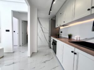 This beautifully renovated 1-bedroom, 1-bathroom penthouse apartment is perfectly positioned in the highly sought-after area of Playa Flamenca, within the desirable urbanization Zenia Star 1. Boasting a bright and open layout, the property offers a modern and stylish living space designed for comfort and convenience. The apartment enjoys a sunny south-facing orientation, allowing for plenty of natural light throughout the day, and features wonderful sea views that can be enjoyed from the main living area and terrace.The home has been completely refurbished to a high standard, combining contemporary finishes with practical design. The open-plan kitchen and living area create a welcoming atmosphere, ideal for relaxing or entertaining guests. A separate utility room adds extra functionality, while a private storage room provides additional space for personal belongings.Residents of Zenia Star 1 benefit from access to a beautifully maintained communal swimming pool and garden area — perfect for cooling off or enjoying the warm Mediterranean climate. The location is second to none, situated within easy walking distance of all local amenities, including supermarkets, cafés, restaurants, and the popular Playa Flamenca Commercial Centre. The famous La Zenia Boulevard shopping mall is just a short stroll away, offering a wide range of shops, dining options, and entertainment.For beach lovers, the beautiful sandy shores of the Mediterranean are only a 5-minute drive away, including the award-winning beaches of Playa Flamenca and La Zenia. Families will also appreciate the convenience of having the local Spanish school just 50 meters from the property.