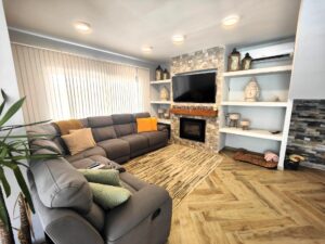 & Luxury Villa with Sea Views in Cabo Roig! **Looking for an exclusive property on the Costa Blanca? This stunning villa in Cabo Roig offers you an unparalleled lifestyle, combining luxury, comfort and proximity to the sea. Main features:** ** **Spacious plot * Large plot of 1000 m²:** Enjoy a private garden, heated swimming pool, jacuzzi, barbecue area, solarium and panoramic sea views. * 380 m² living area:** Distributed in 4 double bedrooms, 1 single bedroom, 2 bathrooms, fully equipped kitchen, large living room, gym, laundry room and several terraces. * Luxury qualities:** Air conditioning, heating, alarm, fitted closets, fireplace, porcelain stoneware floors, double glazed exterior carpentry, reinforced door, automatic doors, jacuzzi, gym and much more. * Privileged location:** Only 140 meters from the beach, close to golf courses, shopping centers, restaurants and all the services you need. Enjoy:** ** **Panoramic sea views * Panoramic sea views:** Wake up every morning with breathtaking views of the Mediterranean. * Ample indoor and outdoor spaces:** Perfect to enjoy with family or friends. * Full equipment:** The villa has everything you need to make you feel at home. * Privacy and security:** The villa is located in a quiet area and has a security system. **Don't miss the opportunity to live in one of the most exclusive areas of the Costa Blanca. **Contact us to arrange a visit! Additional information:** ** Location: Cabo Roig, Costa Roig, Costa Blanca * Location: Cabo Roig, Costa Blanca * Plot area: 1000 m² * Living area: 380 m² * Bedrooms: 5 * Bathrooms: 2 * Extras: Heated pool, jacuzzi, gym, fireplace, sea views, garage, security, children's play area, etc. **This villa is perfect for those looking for the best of Costa Blanca living. **Contact us today!