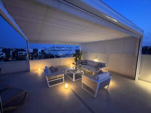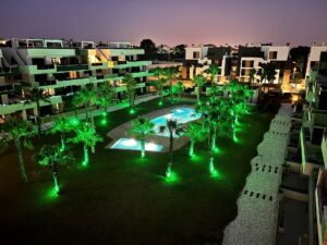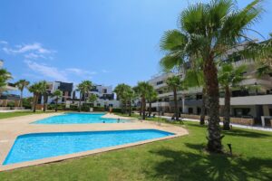 Luxury penthouse with rooftop terrace and Jacuzzi!. Welcome to this beautifully finished and partly furnished apartment in the popular Los Altos (Orihuela-Costa) with jacuzzi!Located in the new Amanecer IX complex, with a private rooftop terrace, balcony, and luxurious jacuzzi – this is outdoor living at its finest on the Costa Blanca.Inside, you’ll find 2 comfortable bedrooms and 2 stylish bathrooms. The apartment, with nearly 71 m² of living space, is cleverly laid out and equipped with modern comforts, including air conditioning with an Airzone system – allowing you to adjust the climate in each room individually.The bright living room connects directly to the open kitchen and the sunny 21 m² balcony. But the real wow-factor awaits upstairs, on the spacious solarium of almost 80 m². Here, you can fully unwind – with sunshine, privacy, and your very own jacuzzi under the pergola. The two pergolas with side panels provide both shade and ambiance – all year round.The apartment is offered partly furnished, with stylish interior furniture, various accessories, and many practical items included.The complex itself offers extra comfort and luxury: residents have access to a communal swimming pool, a fitness room and a relaxing sauna. Everything you need to enjoy peace, exercise and convenience all year round – right at your fingertips.Los Altos is known for its relaxed atmosphere, excellent amenities, and location close to beaches, shops, and restaurants. The property is part of a modern and high-quality complex in Los Altos. A unique opportunity for anyone seeking comfort, space, and outdoor living under the Spanish sun.Will you soon be enjoying this view?