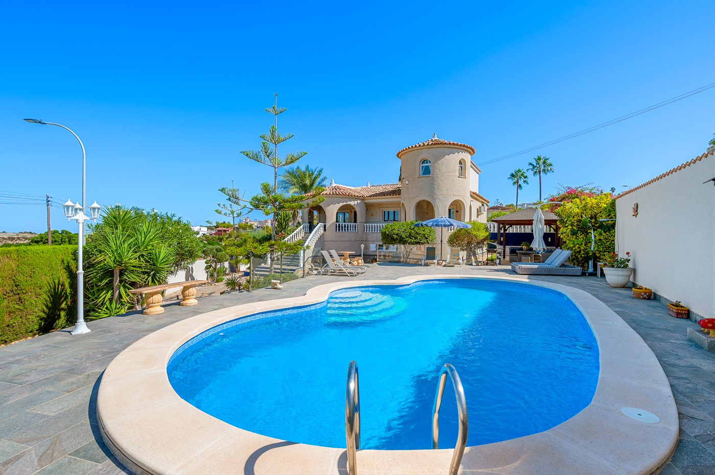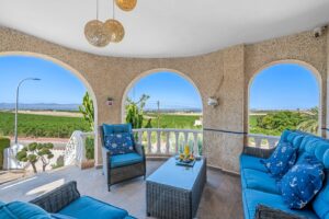 Enjoy endless sunny days in this magnificent Spanish-style villa, perfectly located in Urb. Lomas De La Juliana, Almoradí, just minutes from the prestigious La Finca Golf Resort.