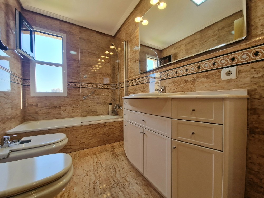 Delux Apartment on Benidorm Beach. This absolutely exclusive property stands out for its spacious and comfortable design, with a surface area of &8203;&8203;161 m², ideal as a first or second home, or even as an investment. It has 4 bedrooms (one en suite) and 3 bathrooms. All rooms, including the living room, are completely exterior and offer spectacular views of the sea, mountains, and city, creating a perfect setting for relaxation.The fully furnished and equipped kitchen features an induction cooktop, oven, microwave, dishwasher, refrigerator, and washer-dryer. It boasts mountain views and a functional laundry area. The home features ducted air conditioning (hot/cold), impeccable electric awnings, two-tone metalwork (white inside and brown outside) with tilt-and-turn windows, wood-effect ceramic flooring, a security door, a safe, and a television.Domestic hot water is produced using city gas. In addition, the built-in cabinets distributed throughout the rooms provide optimal storage spaceThe development offers excellent common areas designed for the well-being and enjoyment of its residents: extensive gardens with natural grass and trees, a large lake-style pool, a tennis court, a sauna, a gym equipped with various machines, and a children's area. The spacious outdoor parking lot is equipped with video surveillance cameras for added security.Located just a 7-minute walk from the beach, with all amenities and public transport within reach, this property is ideal for those who value exclusivity, style and a high quality of life.