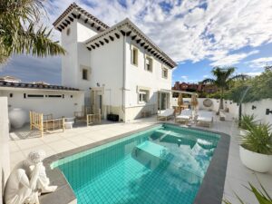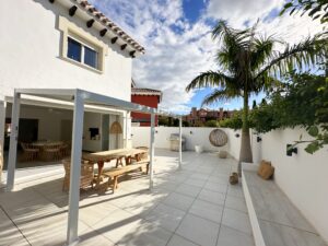 Features: Additional 4th bedroom / dressing roomAdditional office with separate entranceBeautiful and immaculately presentedBespoke kitchen with pantryLarge private plot - not overlookedPrivate swimming pool and landscaped gardensShort walk from the onsite supermarket and Club MMGRStunning fully refurbished Baron villa for sale