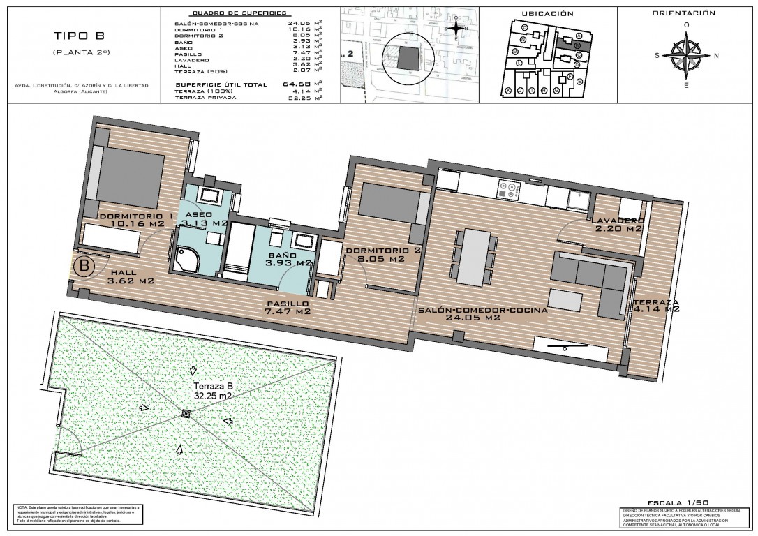 Algorfa – Resale Apartment in Modern Residence with Private Solarium, Pool and ViewsResale apartment located in a recently built residential complex in Algorfa. Purchased off-plan by a private owner, the property has never been lived in. It is now being resold by its first owner, with final finishes still in progress, offering a nearly-new opportunity, with delivery scheduled for September 2025.Located on the 2nd and top floor, with elevator access, the apartment features:An entrance hall leading to2 bedrooms with built-in wardrobes2 fully equipped bathrooms with showersA bright living-dining area with an open-plan kitchen featuring wood-style finishes, equipped with dishwasher, ceramic hob, extractor hood, microwave, oven, and refrigeratorA laundry roomA balcony with open views of the surroundings and the mountains, accessible through sliding glass doorsOn the rooftop, enjoy a private 32 m² solarium, ideal for sunbathing, dining, or relaxing.In the basement:A secure private parking spaceA storage room (trastero)Both accessible by elevatorCommunal amenities include:A rooftop swimming poolA shared fitness roomEnergy certificate expected: ASpecifications (quality report) available upon requestAbout AlgorfaAlgorfa is a charming Spanish town on the southern Costa Blanca, near Guardamar del Segura and Torrevieja. Surrounded by citrus groves and rolling hills, it offers a peaceful, authentic setting with sunshine nearly all year round.Just 35 minutes from Alicante Airport, Algorfa combines nature, local markets, Mediterranean lifestyle, and the prestigious La Finca Golf Resort. It’s ideal for a main residence, holiday home, or a safe rental investment.