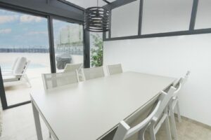 This stunning villa, built in 2023, offers modern living in the peaceful area of Dolores, Alicante. Dolores is a charming town located in the province of Alicante, offering a relaxed, rural atmosphere while being close to the Mediterranean coast. The town has all essential services, including supermarkets, shops, medical centers, schools, and restaurants. Its location provides easy access to larger cities such as Torrevieja and Orihuela, as well as beautiful beaches just a few minutes' drive away. Dolores is perfect for those seeking a peaceful and authentic lifestyle in Spain, with all the comforts of modern life. With 3 spacious bedrooms and 2 bathrooms, the villa is designed for comfort and convenience. The open-plan living area is bright and spacious, seamlessly connecting with the fully equipped kitchen. Step outside to enjoy the covered dining area, ideal for al fresco dining and entertaining guests. The private pool offers a relaxing space to unwind, while the on-site parking area provides secure parking. This villa combines contemporary style with practical living, making it an ideal choice for those seeking a modern and tranquil lifestyle in Alicante.