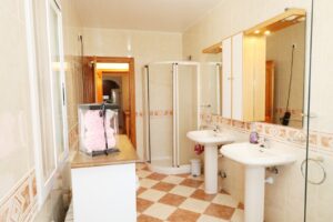 Located in the sought-after area of Bello Horizonte in La Nucia, just outside Altea, this charming family villa is the perfect place to live all year round. The property is distributed over two floors. The main access leads to a large integrated garage and a sunny porch, from which steps lead down to the garden, where you will find orange trees, mature lemon trees and beautiful palm trees.On the entrance level is the master bedroom with en-suite bathroom, a guest toilet, a spacious kitchen, a separate laundry room, and a large living-dining room with fireplace, air conditioning and central heating. Large windows offer spectacular views of the sea, covering Altea, Albir and Calpe. Next to the living room, a stunning terrace with panoramic views becomes the perfect place to enjoy a glass of wine while watching the sunset.The ground floor is accessible from both the inside and the outside, making it an ideal choice for entertaining. This area also has a separate kitchen, as well as 4 more bedrooms (one of them currently fitted out as an art studio), 2 spacious bathrooms and a beautiful terrace overlooking the heated pool area. The low-maintenance gardens, with palm trees, fruit trees and shrubs, create a relaxing atmosphere. The pool is the perfect place to cool off during warm, mild summer nights, and has the added bonus of a poolside Jacuzzi and an outdoor shower.The villa is equipped with solar panels, a battery, a heat pump and an aerothermal energy. Which makes this villa very energy efficient.