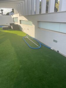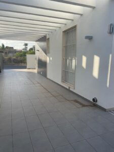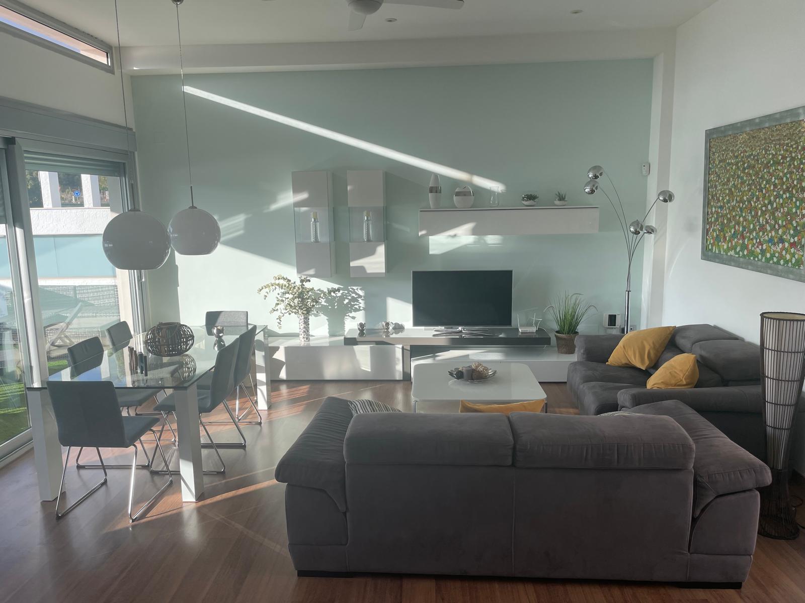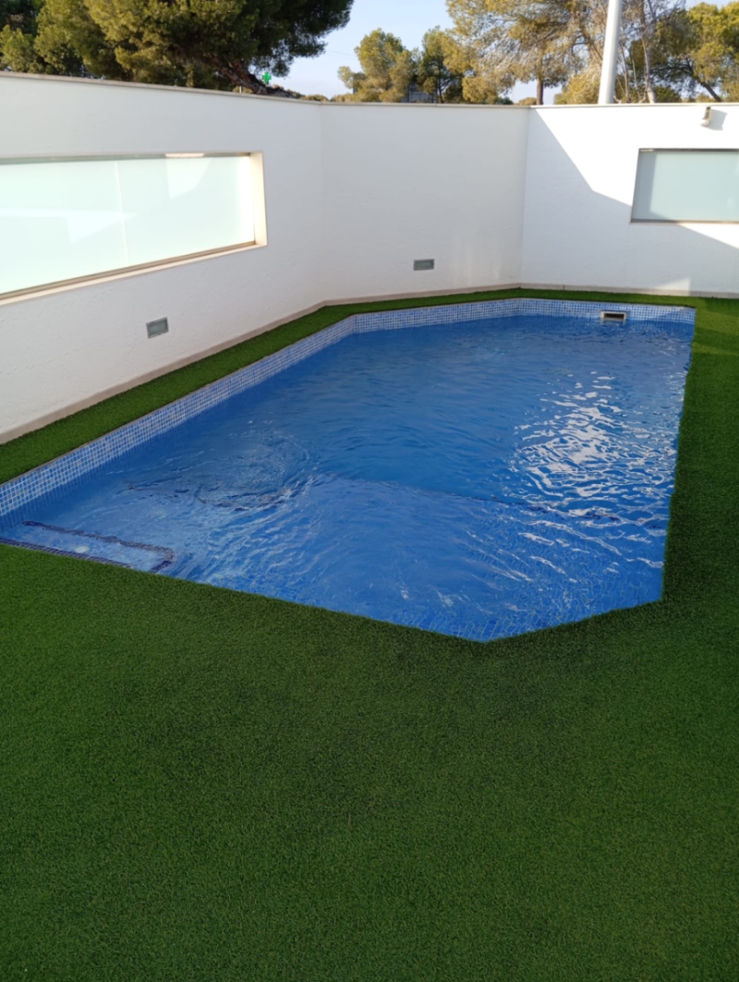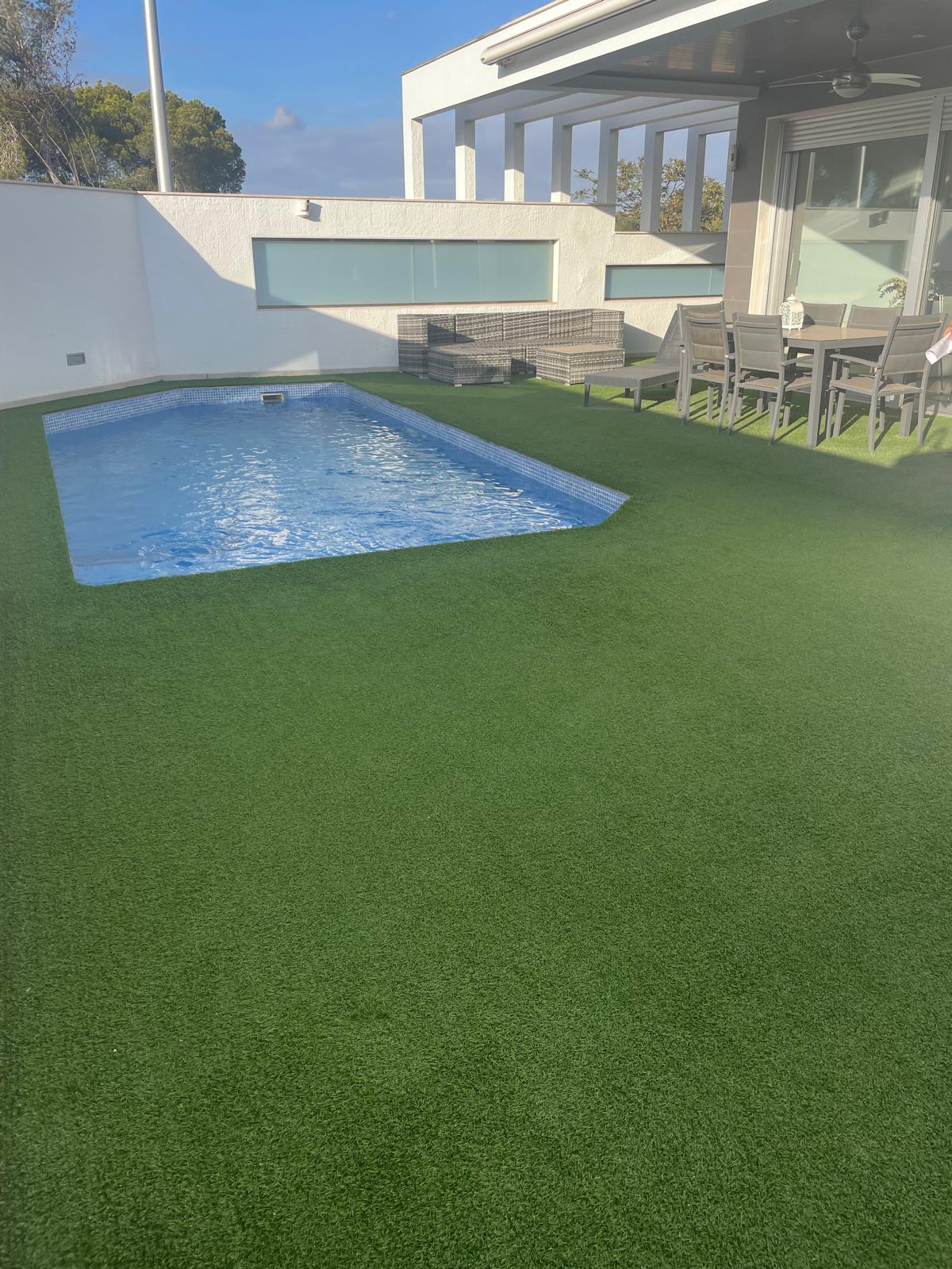 Stunning Modern Home in Mil PalmerasNestled in the desirable area of Mil Palmeras, this exceptional modern home offers the perfect blend of luxury, style, and comfort. With a spacious layout and breathtaking outdoor spaces, this property promises an unparalleled living experience.The expansive back garden is a true oasis. A sparkling pool takes center stage, complemented by sunbeds where you can unwind and soak in the sun. A small, grass-covered meeting area provides a peaceful retreat for gatherings or quiet moments of relaxation. Additionally, the garden includes a cleverly designed, closed-off bathroom with a shower for added convenience and privacy. For those with vehicles, the property features a two-car garage with a roof, offering both shelter and security for your vehicles.Inside, the home showcases a modern design with stunning wooden floors throughout. The open-plan living and dining area is both spacious and inviting, perfect for family gatherings or entertaining friends. The living room boasts a comfortable sofa and TV, creating a cozy atmosphere for relaxation. The dining area is generously sized, offering ample space for meals and celebrations.On the ground floor, the master bedroom is a true retreat, featuring a large bed, a spacious wardrobe, and its own luxurious ensuite bathroom. A second bedroom, located across from the master, offers a peaceful space for guests or family members. There is also an additional bathroom conveniently located near the living area.Upstairs, you’ll find a delightful children’s room complete with its own private bathroom and shower. Two entrances to the balcony allow the room to be bathed in natural light and offer lovely views of the surrounding area.This home is designed with family comfort in mind, offering both modern elegance and practicality. Located in the beautiful Mil Palmeras, it’s the perfect place to call home.Contact us today to arrange a viewing and discover everything this spectacular property has to offer!