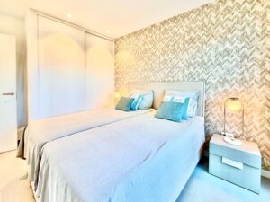 Piękny Apartament na Parterze w Las Colinas Golf – Południowa Ekspozycja i Prywatność Zapraszamy do tego południowego apartamentu w społeczności Naranjo w Las Colinas Golf & Country Club. Wybudowany w 2020 roku, budynek odświeżony w 2025 roku. 90 m², dwie sypialnie i dwie łazienki z ogrzewaniem podłogowym. Jasny salon z wyjściem na taras 35 m² z widokiem na tereny zielone i w stronę morza. Prywatny tylny ogród zapewnia dodatkową prywatność. W pełni wyposażona kuchnia, sprzedawany umeblowany. System smart home, klimatyzacja, oświetlenie LED, elektryczne rolety i filtr wody. Basen wspólny, miejsce parkingowe w garażu podziemnym i komórka lokatorska z windą. 2 km do pola golfowego i udogodnień, 7 km do plaży, 45 minut do lotniska. ✨ Komfort, światło i śródziemnomorski styl życia w jednym miejscu.