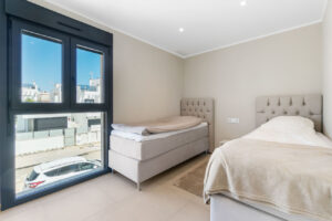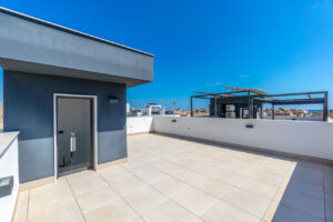 We are pleased to present this exclusive modern-style villa with its own plot and private saltwater pool, located in the sought-after and attractive area of Torre de la Horadada.This stylish villa consists of 3 bedrooms / 3 bathrooms, a living room, and a kitchen in an open-plan layout with direct access to the private pool and the large, sunny patio. The patio offers plenty of space for outdoor furniture, a lounge area, and sun loungers for a relaxing lifestyle.On the ground floor, there is a spacious living room/kitchen, a bedroom with good built-in storage, and a bathroom with a shower. The kitchen is equipped with Siemens appliances, including a built-in microwave in the oven, a coffee machine, and a dining area for 6 people.Upstairs, there are two bedrooms with excellent built-in storage. The master bedroom has an en-suite bathroom with a shower and access to a lovely sun-drenched terrace. There is also a second bathroom with a shower on this floor.One more floor up, you'll find the beautiful and spacious rooftop terrace, where an outdoor kitchen can easily be built for enjoying many pleasant dinners with family and friends. There is ample space for a lounge corner as well.The home features consistently high-quality finishes and generous natural light in all rooms.The villa is within walking distance to the renowned beaches of Torre de la Horadada, as well as the area's range of shops, restaurants, cafés, pharmacies, and grocery stores.Parking is available either on the plot or conveniently on the street outside.This villa must be seen to be fully appreciated!Features:Integrated AC/heating in all rooms (except bathrooms) with individual room temperature controlElectric shutters on most windowsMosquito screens in all bedrooms and in the living room/kitchenUnderfloor heating throughout the propertyAll bathrooms have towel warmersOutdoor lighting around the entire wall with Plejd system, allowing dimmable lightingWater softening system for incoming waterSeparate laundry room with Siemens washer and dryer, plus storage spaceOutdoor shower with hot/cold waterSaltwater pool with automatic refill system for water and salt, includes a jacuzzi section for at least 6 people, and a pool cover is includedThe villa is sold unfurnished with all kitchen appliances included.Possession according to agreementFiber internet installedYear of construction: 2023Built area: 124.96 m²Balcony/Terrace: 10.80 m²Rooftop terrace: 41.62 m²Plot size: approx. 221.48 m²Distance to the sea: approx. 8 minutesNo community association feesAnnual property tax: approx. €800