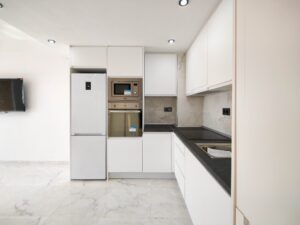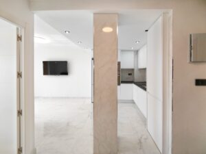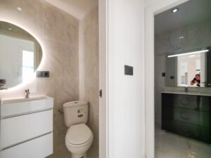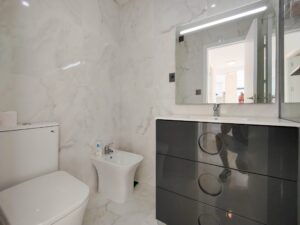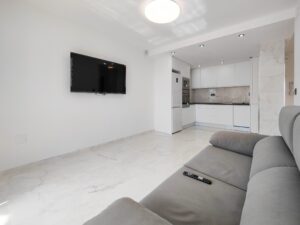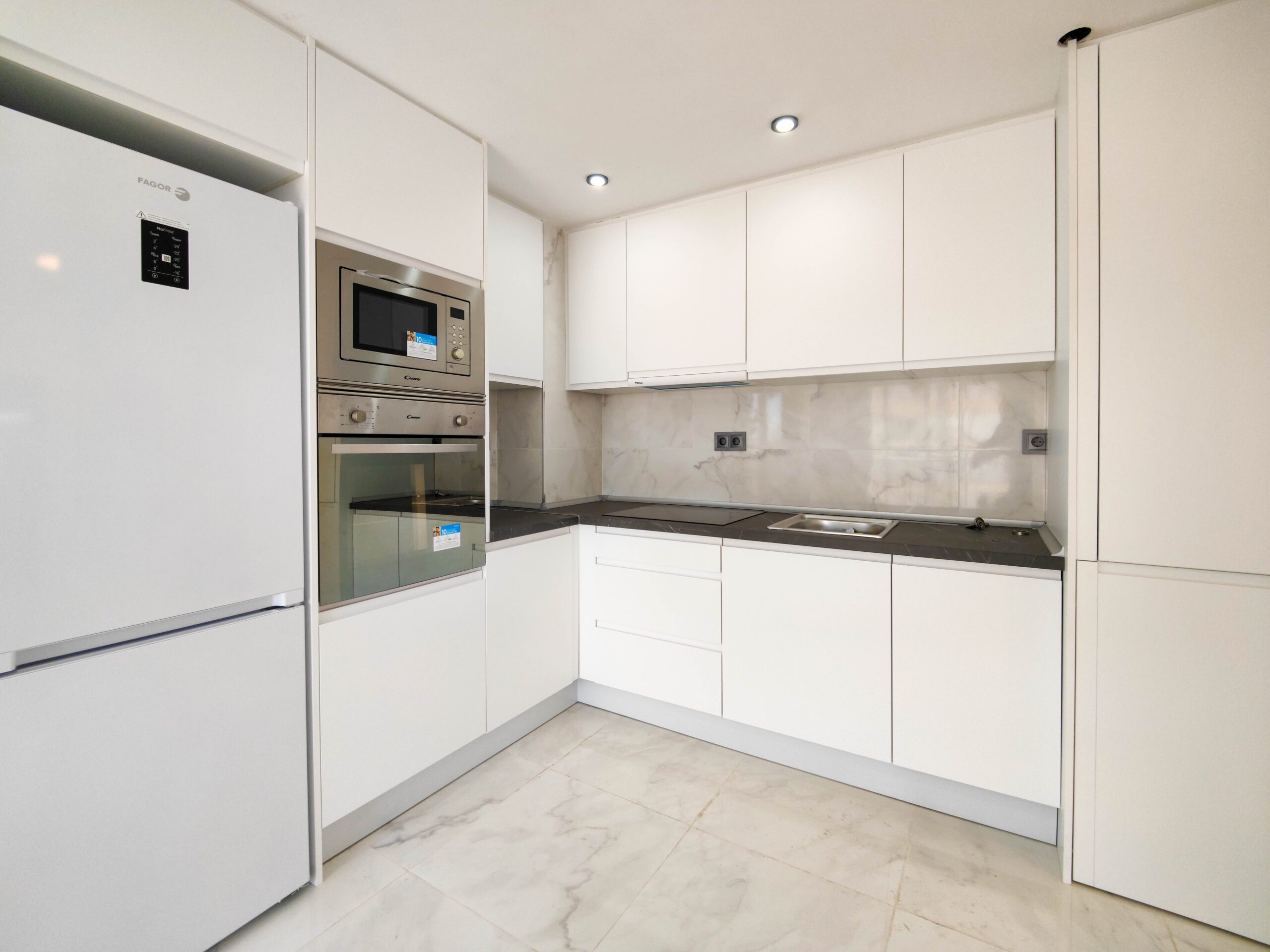 Beautiful completely renovated south facing apartment with views over the swimming pool for sale in Rocío del Mar - Punta Prima - Torrevieja. Located in a building with elevator, covered and fenced parking for residents and a huge communal swimming pool with lifeguard. Very well kept building, recently reinforced.This wonderful apartment has been completely renovated, including electrical installation and plumbing, ready to move into.The apartment has 2 large bedrooms with fitted wardrobes and access to the terrace, 2 bathrooms (both with shower), a bright living / dining room with a beautiful brand new integrated kitchen.The bedrooms and the terrace enjoy an excellent SOUTH orientation, which gives them a lot of natural light. From the terrace we have unobstructed views over the communal pool, ideal for keeping an eye on the children.Privileged location, a few steps from the bars, restaurants, supermarkets and the beaches of Punta Prima.Do not miss the opportunity to buy this beautiful completely renovated south facing apartment with the best orientation and on the best location in Punta Prima!