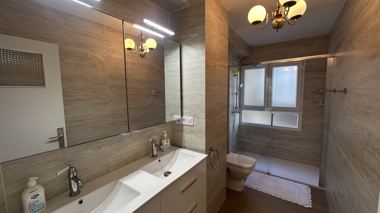 An exclusive, fully renovated apartment on the frontline in the heart of Torrevieja with stunning sea views. The apartment features three spacious bedrooms, two modern bathrooms, high ceilings, wooden floors, and high-quality double-glazed windows, creating a cozy and elegant atmosphere. Its southwest orientation ensures excellent natural light throughout the day. The fully equipped kitchen is ready for immediate use, while the central air conditioning system with heating and cooling modes guarantees comfort all year round. Built-in wardrobes provide optimal storage, and the building has an elevator for added convenience. For security, an alarm system is installed. The apartment also includes an independent laundry room, as well as all necessary furniture and a TV. All utilities, including water and electrical wiring, are brand new and in perfect condition. The location is ideal for both living and investment, with bars, restaurants, supermarkets, schools, hospitals, and universities just a short walk away. Nearby, you’ll also find parks, playgrounds, green areas, golf courses, and entertainment centers. Community fees are €68 per month. This is a perfect home for those looking to enjoy comfort, the sea, and a well-developed infrastructure in the very heart of Torrevieja.