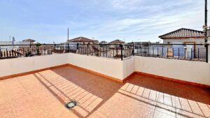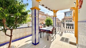 Semi-detached villa located in a private residential complex with a communal swimming pool, in a quiet and well-connected area. The property offers 86 m² built, distributed over two floors, with bright rooms and a layout designed for comfort.On the ground floor, there is a spacious living-dining room with direct access to the terrace, a fully equipped open-plan kitchen with breakfast bar, and a guest toilet. The upper floor includes two double bedrooms with fitted wardrobes, one of them with access to a private terrace, as well as a complete bathroom with shower.The outdoor areas are one of its main highlights: a private 20 m² solarium with open views, perfect for enjoying the Mediterranean climate, and an 80 m² plot with a covered terrace and a paved lateral area with independent access from the street.The property is sold fully furnished and equipped, ready to move into. The complex also offers a communal pool surrounded by green areas, creating a safe and family-friendly environment with all amenities nearby: supermarkets, restaurants, schools and public transport.An excellent opportunity for those looking for a ready-to-enjoy home, whether as a permanent residence, a holiday home or a rental investment on the Costa Blanca.