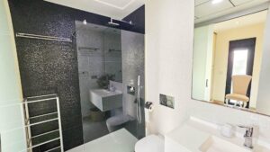 Prezentujemy wspaniałą willę w nowoczesnym stylu, położoną w spokojnej i dobrze skomunikowanej dzielnicy mieszkalnej — idealne miejsce dla osób ceniących komfort, prywatność i wysoki standard życia. Wybudowana w 2014 roku, nieruchomość łączy nowoczesny design z wysokiej jakości materiałami i przemyślanym układem, zapewniającym maksymalną wygodę w każdym pomieszczeniu. Willa ma łączną powierzchnię 125 m² na działce 300 m². Dom zajmuje dwie kondygnacje, a na dachu znajduje się przestronny solarium — doskonałe miejsce do opalania i podziwiania otwartych widoków przez cały rok. Na parterze znajduje się jasny i przestronny salon z jadalnią w układzie otwartym, połączony z w pełni wyposażoną nowoczesną kuchnią. Tutaj znajduje się również główna sypialnia z garderobą, pełna łazienka i toaleta dla gości, wszystkie z bezpośrednim wyjściem do ogrodu i prywatnego basenu. Na piętrze znajdują się dwie dodatkowe duże sypialnie i kolejna pełna łazienka, wszystkie wypełnione naturalnym światłem i z dostępem do prywatnego tarasu. Z tego piętra zewnętrzne schody prowadzą do solarium, tworząc prywatną przestrzeń do relaksu, przyjmowania gości lub cieszenia się klimatem śródziemnomorskim. Willa wyposażona jest w centralną klimatyzację, ogrzewanie podłogowe w całym domu i sprzedawana jest w pełni umeblowana, gotowa do zamieszkania. Teren zewnętrzny łączy strefy wypoczynkowe z imponującym prywatnym basenem, tworząc idealne warunki do relaksu na świeżym powietrzu w pełnej prywatności. Dodatkowo na posesji znajduje się miejsce parkingowe, zapewniające wygodę i bezpieczeństwo. Nowoczesny styl architektoniczny, wysokiej jakości wykończenia i przestronne wnętrza sprawiają, że ta willa jest doskonałą opcją zarówno do stałego zamieszkania, jak i na dom wakacyjny. Ta willa ucieleśnia istotę śródziemnomorskiego komfortu: przestrzeń, światło, styl i doskonałą lokalizację w spokojnej i praktycznej okolicy. Idealny dom dla tych, którzy chcą w pełni cieszyć się słońcem, prywatnością i luksusem.