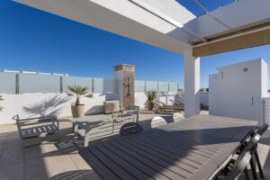 Beautiful Penthouse for Sale in Ciudad QuesadaThis penthouse is fully equipped and features a modern interior that meets contemporary standards. It offers every comfort and provides an exceptionally pleasant and welcoming ambiance where you will feel right at home.The penthouse includes:2 spacious, fully furnished bedrooms2 modern bathroomsA fully equipped kitchenA large living room with very comfortable furniture2 terraces, one of which has a table and four chairsAn exceptionally large rooftop terrace of no less than 78 m², offering stunning views of the lagoon and the beautifully landscaped garden with three large communal swimming pools.The generous and comfortable rooftop terrace is equipped with:A large dining table with six chairs under a retractable sunshadeA cozy lounge setSun loungersA complete outdoor kitchen with a barbecue, refrigerator, and sinkAn outdoor shower with hot and cold waterAdditionally, the penthouse includes a secure outdoor parking area with three electric gates and a private parking space.In the immediate vicinity, you will find:A playgroundFitness facilitiesFree tennis courtsLocated in a beautiful area along one of Spain's most stunning coastlines — the Costa Blanca South — in the picturesque town of Rojales/Ciudad Quesada.It’s just a short distance from the seaside resort of Torrevieja and close to the charming Guardamar del Segura with its famous sandy beaches.Accessibility to this penthouse is simply excellent, with two airports nearby:Alicante-Elche Airport (only 30 minutes away)Murcia-Corvera Airport (just 1 hour away)