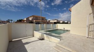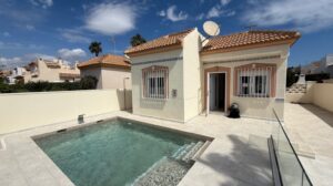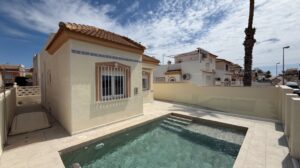 Beautiful villa with private pool, a large solarium with sea views and all-day sun.Located in Torre del Moro, just 400 meters from the sea and a 10-minute walk to La Mata beach.This fantastic Mediterranean-style house offers 2 bedrooms, 1 fully renovated bathroom, a spacious living room with a new American-style kitchen. Equipped with air conditioning in the living room.The property is newly renovated and in excellent condition, ready to move in and enjoy life. A short distance from the Las Salinas shopping center and the Torremarina shopping center where you can find various restaurants, bars, supermarkets and much more.Don't miss the opportunity to buy this beautiful villa with a private pool a short distance from the beaches of Torrevieja!