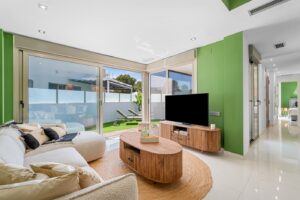 3 bedrooms & 2 bathrooms Bright open living room and modern kitchen Fully furnished with luxury furniture from Bella House (excluding outdoor furniture) Private garden, heated swimming pool and private parking Large storage room for bicycles or golf equipment Located near golf courses, shops and beaches