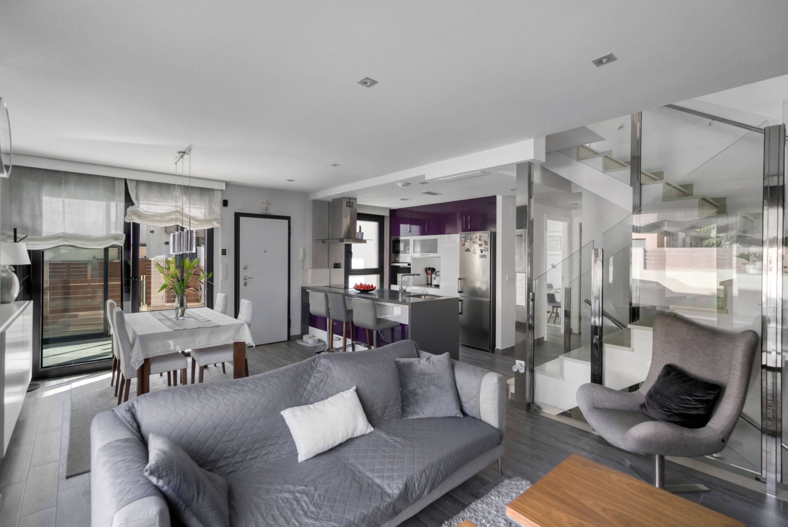 We offer our clients this modern and well maintained villa located in the popular area of Aguas Nuevas, just north of the center of Torrevieja. The villa has two floors, plus a basement and a roof terrace. On the first floor, you will find a living room with open kitchen, laundry room, a bedroom and a bathroom. On the upper floor, there are two bedrooms, a bathroom and a spacious terrace that also gives access to the roof terrace, from where you can enjoy a beautiful view of the surroundings. In the basement, there is another family room, a bathroom and two rooms currently used as bedrooms. Outside, the property has a private swimming pool, a beautiful glazed terrace and several additional patios where you can enjoy the nice weather. The house is located in a gated community. This villa is located in a very popular area, close to supermarkets, restaurants, bars, schools and within walking distance of the famous Friday market of Torrevieja. From here, you can cycle to the Habaneras shopping center, the center of Torrevieja and the well-known beach of La Mata. Torrevieja is a vibrant city all year round, offering activities for all ages and interests, such as bowling, golf, shopping or just enjoying a day at the beach. If you are looking for a spacious, modern villa in excellent condition for the whole family, you have found the perfect place. Welcome to your new home.