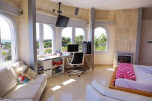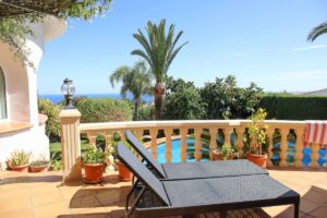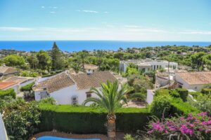 Welcome to your dream villa in Balcón al Mar, Javea! Perched at the highest point of the area, this stunning property offers breathtaking 270degree sea views that will leave you in awe.This spacious villa features four beautifully appointed bedrooms, including two double bedrooms with ensuite bathrooms located on the top floor, providing a private retreat with spectacular views. The main floor hosts an additional two bedrooms, perfect for family or guests.The heart of the home is a large living room with a cozy fireplace, seamlessly connected to a dining area that invites you to enjoy meals while soaking in the panoramic vistas. The modern kitchen, complete with a bar, flows into another dining area that overlooks the inviting pool and terrace, making it ideal for entertaining or relaxing in the sun.The villa is thoughtfully designed across three floors, ensuring ample space and comfort. An independent apartment, currently used as an office, offers the flexibility to be converted into a guest suite or rental space, adding to the property's versatility.Conveniently located, this villa is just a short drive from Javea Arenal and is surrounded by a variety of restaurants and supermarkets, making daily living a breeze. You’ll also be close to famous viewpoints, perfect for enjoying the stunning natural beauty of the area.Equipped with aerothermal heating and air conditioning, this home ensures year round comfort. Additional features include double glazed windows, two garages, and numerous spots to bask in the sun or enjoy the shade, making it perfect for all your living needs.Don’t miss the opportunity to own this exceptional villa in one of Spain's most sought after locations!