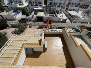Lovely east facing 3-bedroom, 2-bathroom house located in La Florida. On the ground floor of the house, you have a beautiful garden where you will find enough space to enjoy the sun and of road parking with carport. Through the terrace at the front of the property you access the cozy living/dining room.There is a separate fully equipped kitchen with access to the terrace next to the house and a storage room for your bbq, garden furniture and bikes for example.There is L shape living room and separate kitchen which han been renewed.The bedroom on the ground floor has fitted wardrobes and a full bathroom with shower.Stairs from the lounge take you upstairs where you will find a family bathroom and 2 bedrooms with fitted wardrobes. 1 of the bedrooms has direct access to a terrace.On the upper floor you will also find the roof terrace with a beautiful view of the surrounding area and sea views.The community has a swimming pool and a tennis court.Within walking distance, you will find several bars, restaurants and a small supermarket.La Florida is a central Residencial área in Orihuela Costa. The beaches of Punta Prima and Playa Flamenca are less than a 30-minute walk away for visitors without a vehicle. La Florida has some of the most popular bars and restaurants in Orihuela Costa. All of these are centered around Scorpio Street, which is also home to a park, playground, and tennis courts. The famous Abbey Tavern is an Irish-themed bar. It has a beautiful bar, DJ booth, dance floor and a fantastic secret gardenOther entertainment options in this strip include The Arianaz bar, Waldemar’s Indian restaurant and Pizzeria La Familia, which also offers live entertainment in the garden. A short walk from the strip is the very popular Emerald Isle. This is a large Irish bar and restaurant complex famous for its regular live entertainment and Sunday Roast. Visitors can enjoy a large swimming pool surrounded by lawns to relax and sunbathe. The resort is also home to the well-maintained Emerald IsleLawn Bowls Club.