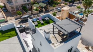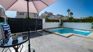 Independent villa with private pool, two floors, and solarium with spectacular views of Laguna RosaDon’t miss this unbeatable opportunity! This nearly new villa, located in an exclusive residential area surrounded by nature, is being sold below market value. With just a few months since its construction, it combines modern design, comfort, and total privacy.Built on a 116 m² plot, the home offers 106 m² distributed over two floors plus a private solarium with breathtaking views of Laguna Rosa in Torrevieja.The ground floor features a bright living-dining room with an open kitchen, one double bedroom, and a full bathroom, perfect for single-level living. The upper floor boasts two spacious bedrooms with en-suite bathrooms, each with direct access to the solarium, creating the ideal retreat.The exterior is designed for minimal maintenance and includes a private pool where you can enjoy the Mediterranean lifestyle all year round.This villa comes fully furnished and equipped, with all the extras: private pool, solarium, premium finishes, furniture and stylish modern decor.Now priced at 385,000€, this listing represents a true bargain. Originally valued at 385,000€, the purchase price just six months ago reached 420,000€ after adding extras such as the pool and solarium. Today, you can secure it at its original price — saving more than €35,000 compared to what was paid.Its privileged location is another highlight: only minutes from Habaneras shopping center, downtown Torrevieja, beaches, and all essential services.This is not just another property — it’s a rare chance to own a high-end, nearly new villa at a reduced price. Homes of this caliber and value do not stay on the market for long.Contact us today to arrange a viewing before this exceptional opportunity is gone!