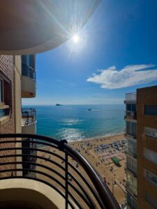 Frontline beach Levante in Benidorm. Apartment with 3 bedrooms, bathroom, and toilet.Bedrooms 1 and 2 with terrace. Large L-shaped terrace on the south and west facades, with the possibility of a fourth bedroom.Residential complex with community pool and children's playground with slide and swings.