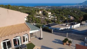 This charming property combines Mediterranean style with a privileged location.On the ground floor, we find a bright kitchen, a cozy living-dining room, a courtesy bathroom, a bedroom with a dressing room and en-suite bathroom, as well as a storage room.The upper floor has two bedrooms that share a full bathroom, with independent access from the outside, providing flexibility and comfort.The villa features multiple details:Panoramic sea viewsGarage for 2 carsPool, covered terrace, and barbecue areaDouble glazing and shutters in bedroomsGas heating and hot waterSold fully furnishedSituated on a spacious plot of 1,669 m², the property offers privacy, space, and the possibility of expansion to transform it into, for example, a larger Ibiza style villa. The current size of the villa is already 255 m², and next to the house with its huge terrace, there is a natural area that can be used for further construction.A unique property, with character and enormous potential in one of the most exclusive areas of the Costa Blanca.