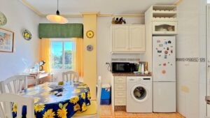 Located in the Zeniasol residential complex, just a short walk from La Zenia beach and the Zenia Boulevard shopping centre, this bright top-floor corner bungalow is in excellent condition.The property features a cosy living-dining room with a fully equipped open-plan kitchen, two double bedrooms with fitted wardrobes and a renovated bathroom with shower. Large windows provide plenty of natural light throughout, creating a warm and comfortable atmosphere.One of the highlights is the private solarium of approximately 40 m², perfect to enjoy the sun all year round. It includes a built-in barbecue and offers ample space to create relaxing areas, an outdoor dining space or even a chill-out zone with open views.The residential complex boasts a communal swimming pool surrounded by gardens, and the property also includes an exterior parking space.Its location is excellent: in a quiet setting yet within walking distance to all amenities such as supermarkets, restaurants, schools, public transport and leisure areas. Both the beach and Zenia Boulevard are only a few minutes away on foot.An ideal property either as a holiday home or as a rental investment in one of the most sought-after areas of Orihuela Costa.