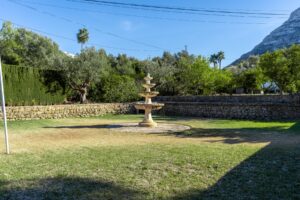 Upon entering the property, you will be greeted by a beautifully manicured garden, adorned with a serene pond where fish swim, as well as a lush orchard of orange and lemon trees, adding a charming sense of freshness and tranquility.