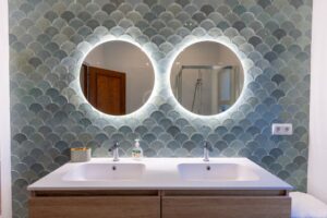 On the first floor, you'll find two bedrooms, one of them a cozy double room with a separate bathroom, and the other, the spacious master bedroom, flooded with natural light through several windows, with a spacious private bathroom.
