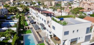 The property features 3 spacious bedrooms and 2 stylish bathrooms, thoughtfully designed with high-quality details. Two private balconies allow you to enjoy different perspectives – one overlooking the sparkling communal pool with a glimpse of the Mediterranean, the other capturing the morning or evening light.