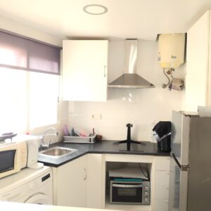 The apartment is presented as a studio, but has a separate bedroom with built-in wardrobe and a terrace. It has a built-in area of 34 m². It has a bright and comfortable living room with air conditioning, a sofa bed, a fully equipped open-plan kitchen, and a bathroom with a shower. It is just 380 meters from the beaches of Náufragos and a little further from Acequión beach.LARGE STORAGE ROOM INCLUDED IN THE PRICESold furnished and equipped as shown in the photosCOMMUNAL POOLBuilding WITHOUT elevatorNORTHWEST FACINGYear of construction: 1989Owner's community fee: €300 per yearTotal property tax: €150 per year