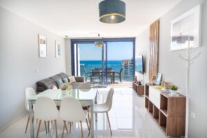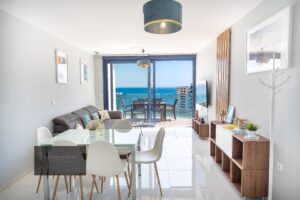 Luksusowy Penthouse w Pierwszej Linii Morza – Sea Senses, Punta Prima Ekskluzywny penthouse o powierzchni 124 m², położony w pierwszej linii morza, w prestiżowym kompleksie mieszkaniowym Sea Senses w Punta Prima (Torrevieja). Wyjątkowa nieruchomość łącząca nowoczesny design, komfort oraz spektakularne panoramiczne widoki na Morze Śródziemne. Nieruchomość oferuje 3 przestronne sypialnie oraz 2 w pełni wyposażone łazienki, z nowoczesnym i jasnym układem pomieszczeń. Przestronny salon z jadalnią w otwartym układzie prowadzi na imponujący taras z bezpośrednim widokiem na morze, idealny do korzystania ze śródziemnomorskiego klimatu przez cały rok. W pełni wyposażona kuchnia wyróżnia się wysoką jakością wykończeń i funkcjonalnością. Penthouse znajduje się na 9. piętrze, co zapewnia prywatność, doskonałe doświetlenie oraz niezakłócone widoki. W cenie znajduje się miejsce parkingowe. Kompleks oferuje luksusowe udogodnienia, takie jak baseny infinity, zadbane ogrody, siłownia, spa, całodobowa ochrona oraz bezpośredni dostęp do promenady nadmorskiej. Doskonała lokalizacja, zaledwie kilka kroków od plaży, restauracji i wszystkich usług, z bardzo dobrymi połączeniami komunikacyjnymi. Idealna jako stałe miejsce zamieszkania, drugi dom lub inwestycja premium.