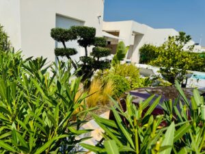 The villa offers 2 spacious bedrooms, 2 sleek bathrooms with underfloor heating, a guest toilet, and an open-plan living area filled with natural light. A third room is currently used as a dressing room or office but can easily be converted into an extra bedroom.