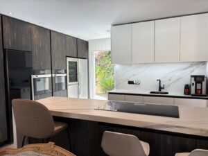 The modern kitchen is fully equipped with high-end appliances from brands like Miele and Liebherr — a clear mark of quality.