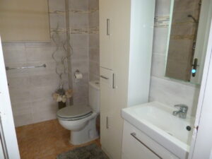 A beautiful San Jose Villa with 4 bedrooms 3 bathrooms and private swimming pool in Playa Flamenca between the La Zenia Boulevard and the popular Saturday market. The Villa has been modified and redecorated to a high standard. To the front is off street parking with a seating area. The garden is low maintenance with pot plants and mostly tiled. The patio doors is to the ground floor apartment / Annex with two bedrooms, bathroom, modern fitted kitchen, utility area and living room. The stairs from the front driveway take you to the rear garden and swimming pool with entrance to the main building. A conservatory seating area overlooking the swimming pool, the living room with gas fire and dining room with exit to seating area looking across the garden and swimming pool. A shower WC and modern fitted kitchen are off the living room. A doorway to the downstairs Annex and an archway to the upstairs bedrooms and solarium, the two bedrooms have ceiling fans, air conditioning, the master bedroom having a walk in wardrobe and seating area, looking out to the park and children’s play area. The top level is the solarium with its satellite dish and views of the surrounding area and the La Zenia Boulevard shopping centre.