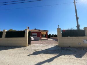 This villa is located between Albatera and Crevillente, offering excellent connections to both cities. It is less than 5 minutes from the motorway, providing quick access to Murcia, Alicante, the airport, and Costa Blanca, all approximately 30 minutes away.The property features a house with 132 m² of usable space, which is in excellent condition. All rooms are spacious and bright, with 3 bedrooms, one of which is en-suite, and a total of 2 fully equipped bathrooms. The kitchen is in top condition, and the large living room provides a comfortable and inviting environment. Additionally, the house is equipped with air conditioning via ducts, offering both cooling and heating functions for year-round comfort.Outside, you can enjoy a large terrace of over 49 m², ideal for relaxing in the shade during the summer months. The main garden, covering 2,000 m², includes a swimming pool of approximately 35 m², a barbecue area, several trees, and a fully fenced plot with an electric gate for easy vehicle access. At the end of the garden, you will find a 12 m² storage room.The property also includes an additional plot of around 11,000 m², which can be used for agricultural purposes.The house is in excellent condition, though the swimming pool requires some minor adjustments to the tiles. Other than that, the house is ready for immediate move-in.Please feel free to contact us to arrange a viewing and discover everything this fantastic property has to offer.
